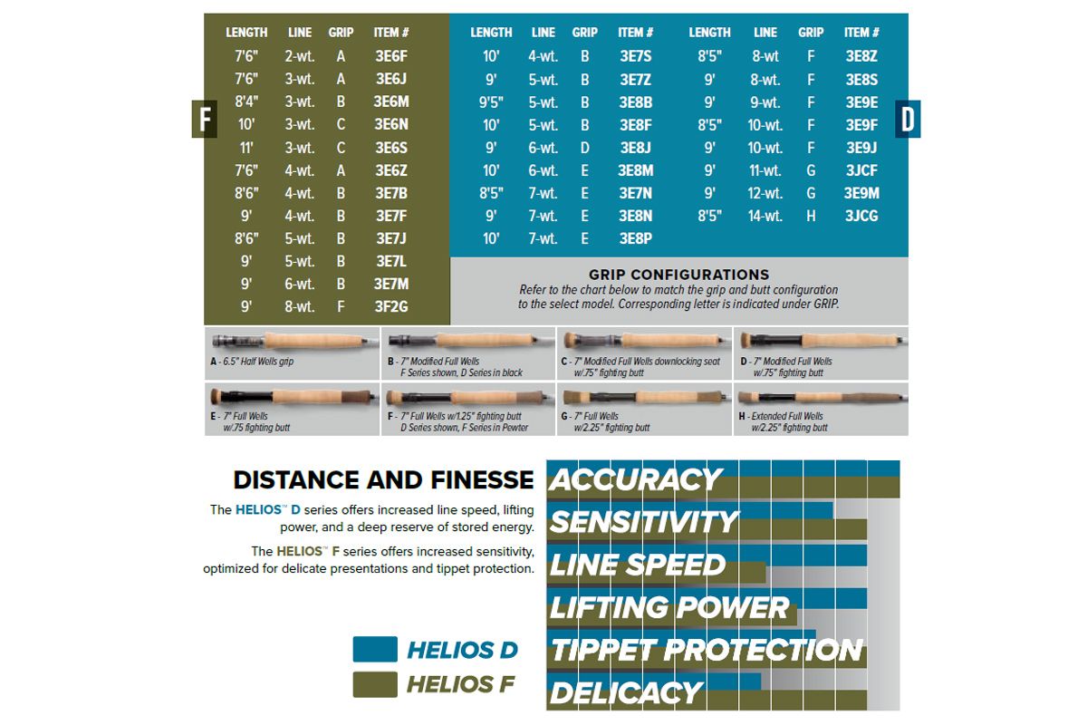 + Die ORVIS HELIOS D-Serie steht für hohe Schnurgeschwindigkeiten, mehr Rückgrat im Drill und ein kraftvolles Ruten-Taper für besonders lange Würfe unter widrigen Bedingungen.